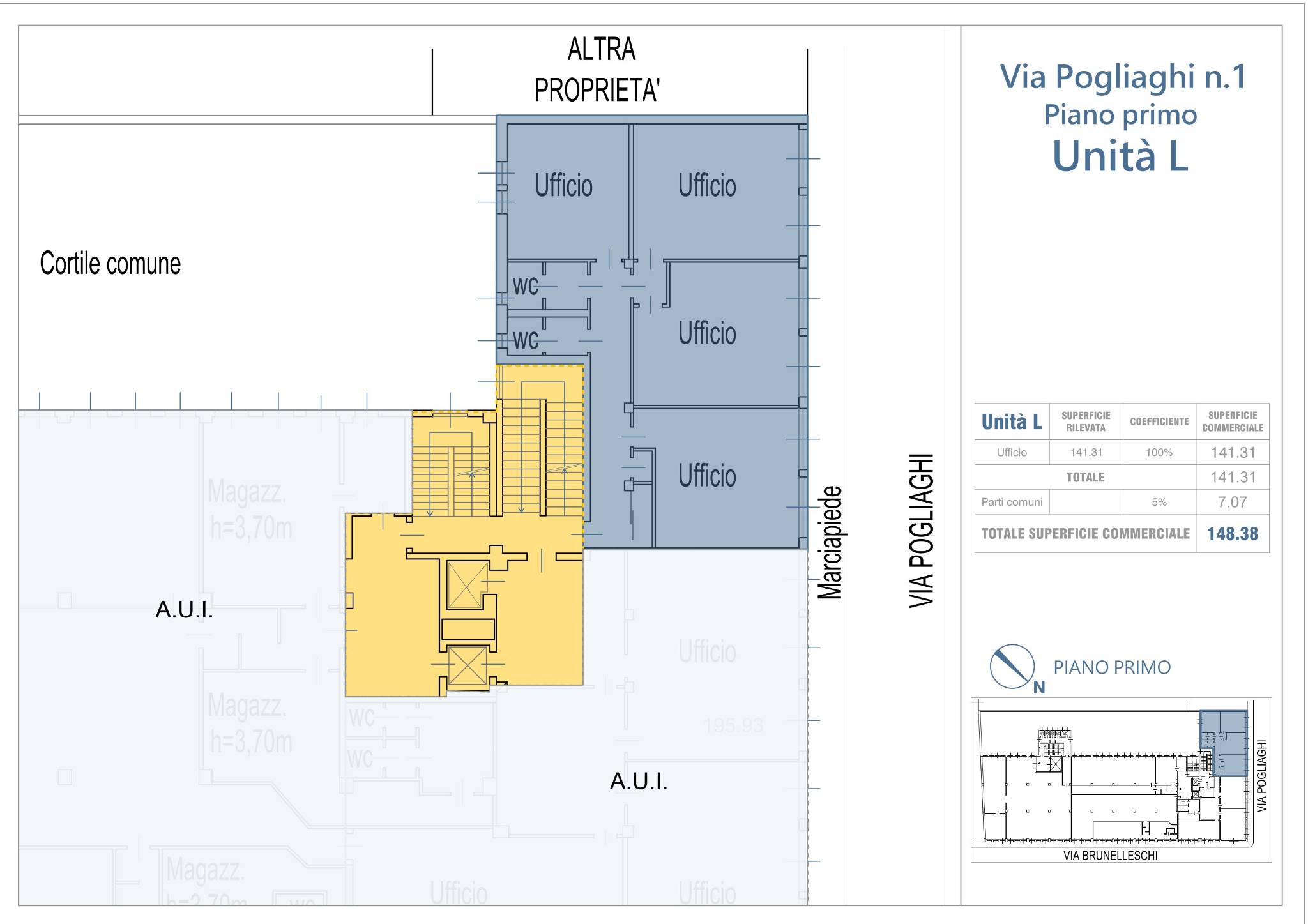| Ufficio - 1° piano | 148 Mq | 148 Mqc |