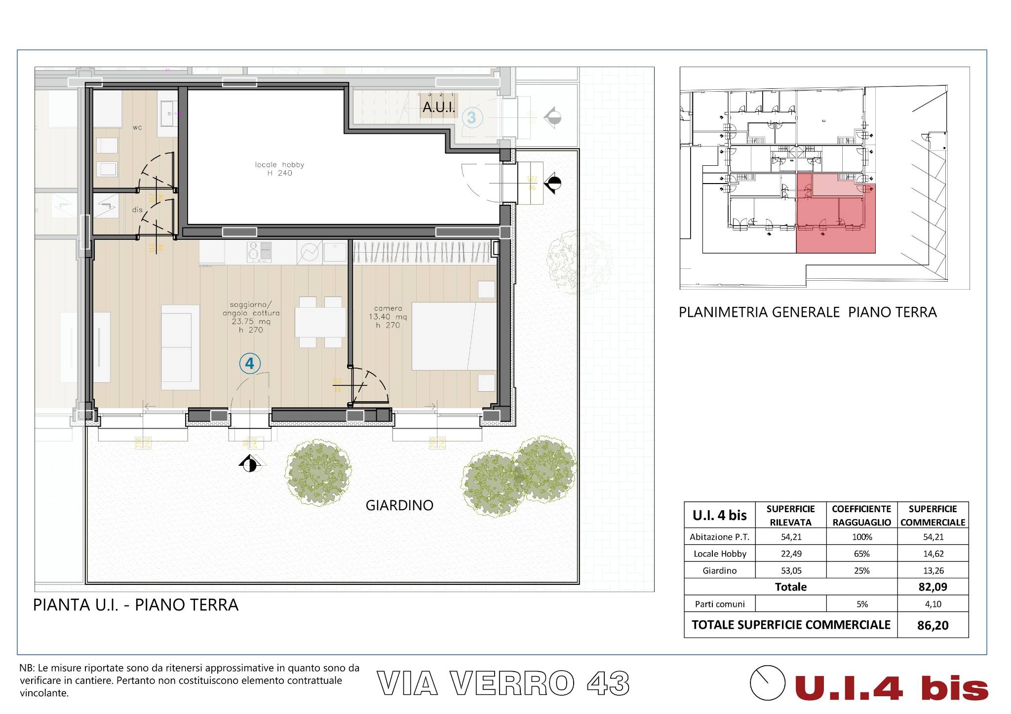 | Immobile - piano terra | 54 Mq | 54 Mqc |