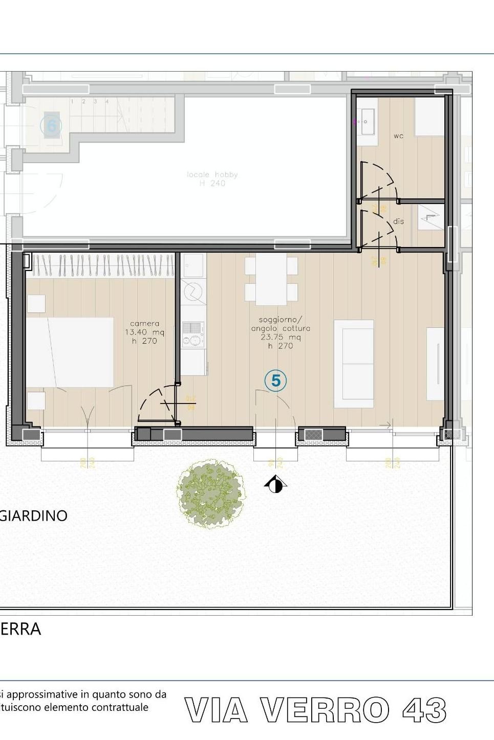 Rif: verro unita' BIS - Appartamenti di nuova realizzazione ad uso abitazione IN CLASSE B - Via Verro - Zona Bazzi/Spadolini - Vic.ze Università Bocconi / Via Verro : In contesto esclusivo ed immerso nel verde proponiamo loft (accatastati come abitazione A3 ) di nuova realizzazione in classe energetica B, con giardino privato. Nello specifico proponiamo immobile su due livelli. Al piano terreno 54 mq: ingresso, zona living con cucina a vista, bagno, camera da letto. Locale hobby di 22 mq. Per concludere bellissimo giardino di proprietà di 75 mq. Possibilità di acquisto posto auto.