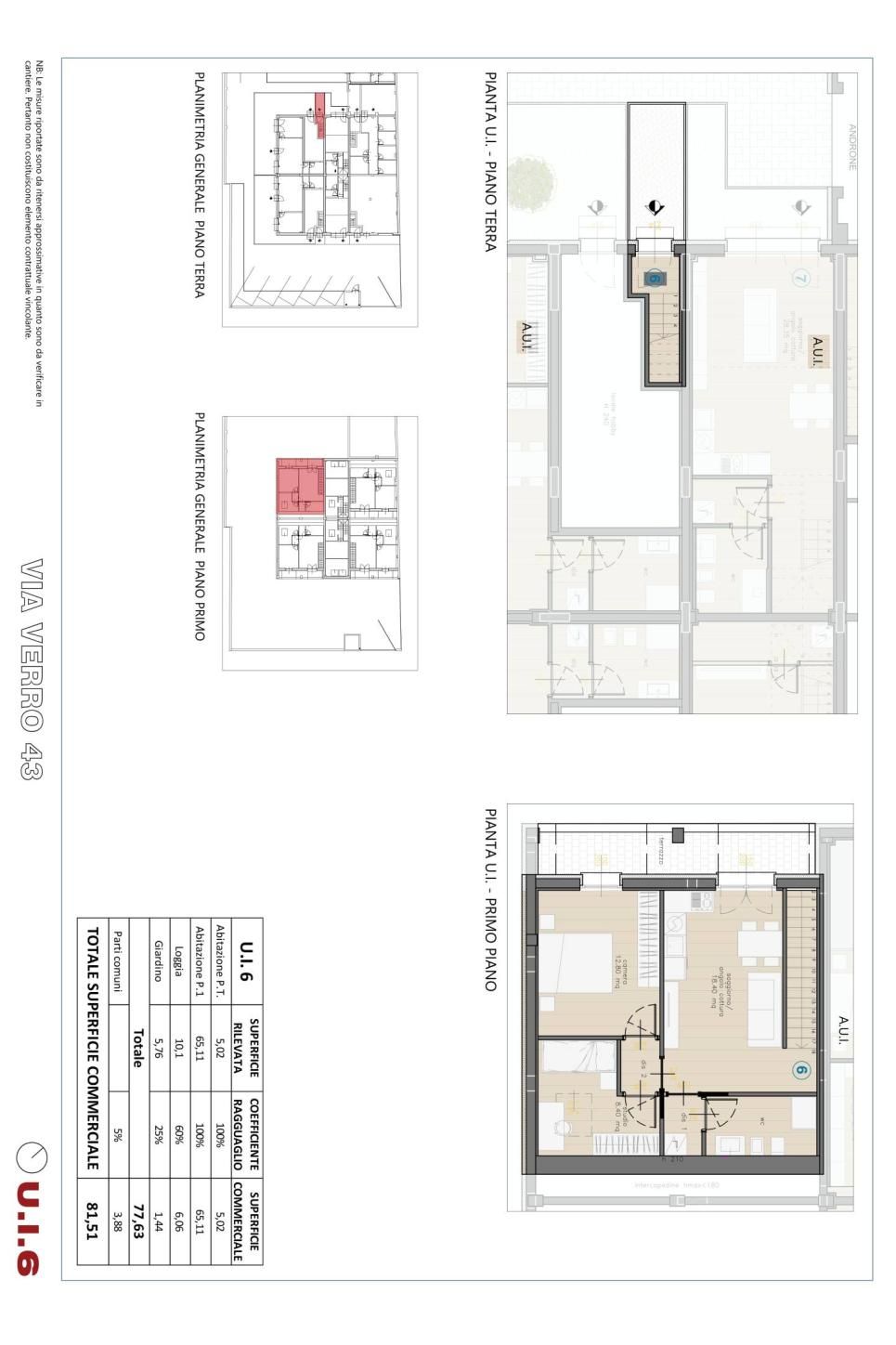 Rif: verro unita'6- Appartamenti di nuova realizzazione ad uso abitazione IN CLASSE B - Via Verro - Zona Bazzi/Spadolini - Vic.ze Università Bocconi / Via Verro : In contesto esclusivo ed immerso nel verde proponiamo loft (accatastati come abitazione A3 ) di nuova realizzazione in classe energetica B, con giardino privato e posto auto. Nello specifico proponiamo immobile su due livelli. Al piano terreno 5 mq : ingresso con scala di accesso al primo piano 65 mq: zona living con cucina a vista, bagno, due camere da letto e terrazzino loggiato di 11 mq. Per concludere bellissimo giardino di proprietà di 5 mq.